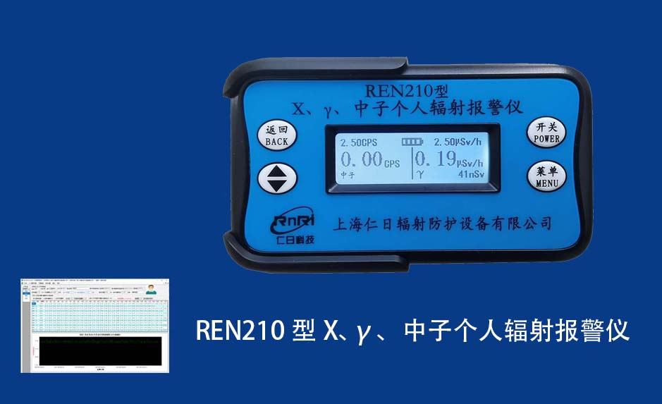 REN210 個(gè)人劑量報(bào)警儀REN210型X、γ、中子個(gè)人輻射報(bào)警儀內(nèi)置SiPM和鋰玻璃晶體組成中子探測(cè)器儀器,采用反照率方式探測(cè)中子射線,同時(shí)也能探測(cè)X、γ射線。因此它可同事監(jiān)檢測(cè)X、γ、中子三種射線。能顯示工作場(chǎng)所的劑量當(dāng)量率和累積劑量,更換電池時(shí),日期及累積數(shù)據(jù)能永久保存。可選配RenRiPersonal個(gè)人劑量管理軟件,該軟件可存儲(chǔ)多個(gè)人的歷史數(shù)據(jù),能記錄日累積、月累積、年累積、輻照時(shí)長(zhǎng)、計(jì)算平均劑量率、扣除或不扣除本底輻射,且以文字和圖譜的方式展現(xiàn)數(shù)據(jù)。廣泛應(yīng)用于環(huán)保、化工、水泥、煤礦、土木工程、石油、醫(yī)院、疾控、進(jìn)出口商檢、核電、加速器、機(jī)場(chǎng)、中子源庫(kù)和其他安檢、邊境控制海關(guān)檢測(cè)等
